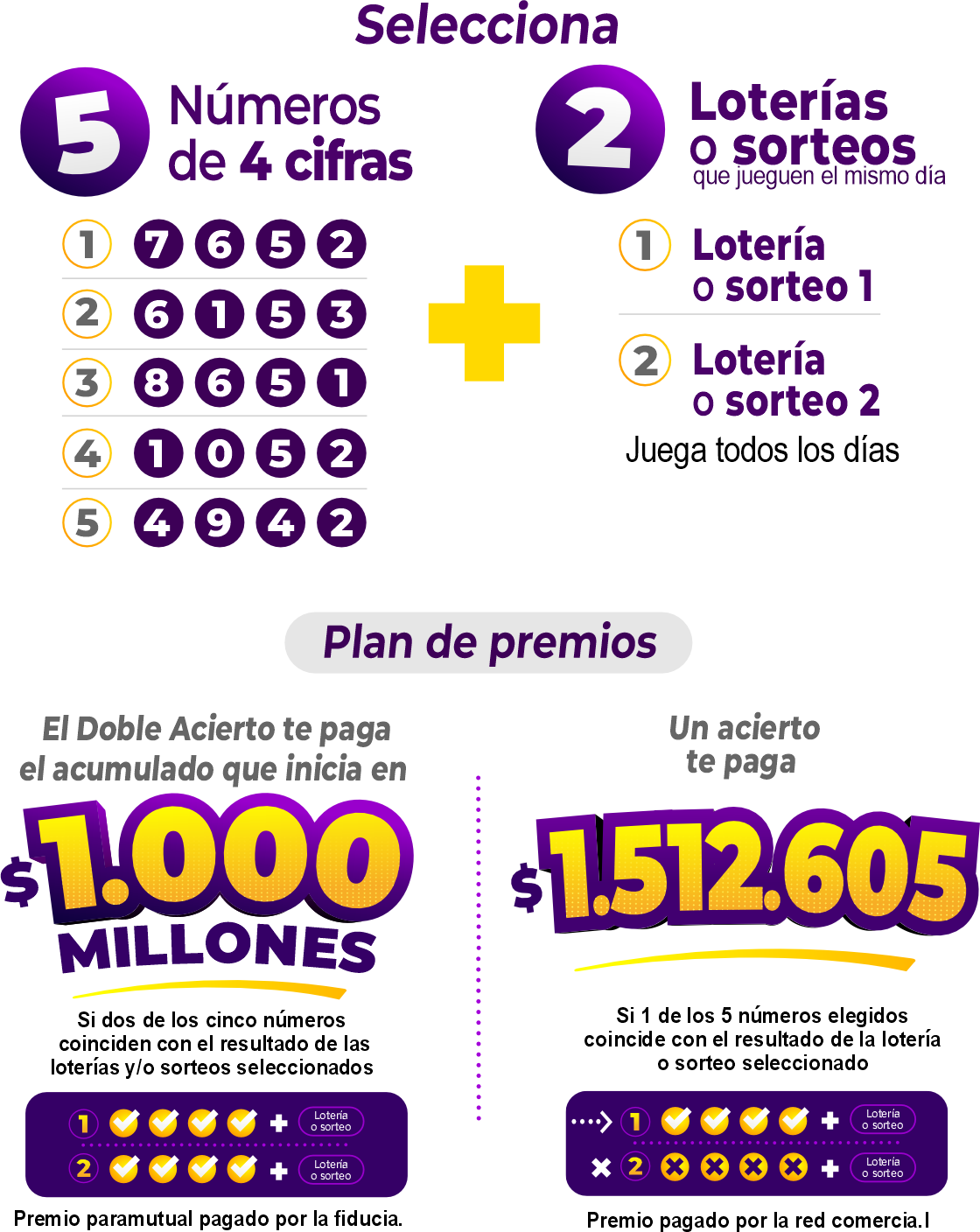 • El juego se desarrolla de lunes a domingo (incluyendo los festivos) y el resultado se da a conocer a través de la página web www.chancemillonario.com, luego de conocerse las cuatro cifras del premio mayor de la última lotería o sorteo en juego con el que cruza el producto.